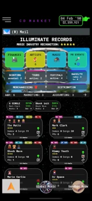 सीडी मार्केट एक आकर्षक म्यूजिक लेबल सिमुलेशन गेम है जहाँ आप अपने सपनों का रिकॉर्ड लेबल बना और प्रबंधित कर सकते हैं। यह मुख्य रूप से टेक्स्ट-आधारित है, जो आपको अपनी संगीत कंपनी की रणनीति बनाने, कलाकारों को साइन करने और हिट गाने बनाने का अनूठा अनुभव प्रदान करता है।