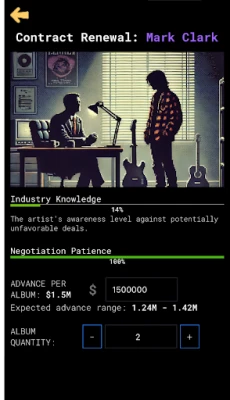 अपनी कंपनी के लिए होनहार कलाकारों की खोज करें और उन्हें सुपरस्टार बनने की राह पर मार्गदर्शन करें। कलाकारों की अनोखी केमिस्ट्री, उनके तनाव, बोरियत या यहाँ तक कि व्यक्तिगत लतों जैसी जटिलताओं को सावधानी से संभालें। उन्हें मंच पर चमकने और उनकी रचनात्मकता को पंख देने के लिए अवतारों को अनुकूलित करें। लाभप्रद कॉन्ट्रैक्ट्स पर बातचीत करें, भव्य टूर आयोजित करें, ट्रेंडिंग मर्चेंडाइज डिज़ाइन करें और बेचें। अपनी रिलीज़ के लिए जोरदार मार्केटिंग अभियान चलाकर दर्शकों में उत्साह पैदा करें और रिकॉर्ड-तोड़ बिक्री हासिल करें, साथ ही प्रतिद्वंद्वी लेबलों के साथ कड़ा मुकाबला करें।