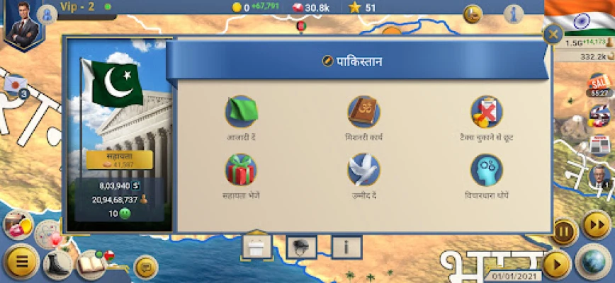 नागरिकों के जीवन स्तर को उन्नत करने के लिए स्वास्थ्य, शिक्षा, न्याय और रक्षा जैसे महत्वपूर्ण मंत्रालयों को सशक्त करें। असंतोष को दूर रखने और राष्ट्र की स्थिरता बनाए रखने के लिए राष्ट्रपति की अनुमोदन रेटिंग पर पैनी नज़र रखें। कारखानों, खेतों और ऊर्जा संयंत्रों का निर्माण कर आर्थिक विकास को गति दें, जबकि कॉन्सर्ट, फिल्म समारोह और ओलंपिक खेलों जैसे सांस्कृतिक आयोजनों के माध्यम से सामाजिक सद्भाव को बढ़ावा दें। पर्यटन मंत्रालय को विकसित करके अपने राष्ट्र को एक विश्व-स्तरीय गंतव्य बनाएं और प्रतिष्ठित विश्व अजूबों जैसे एफिल टावर या कोलोसियम का निर्माण कर अपनी विरासत को अमर करें। साथ ही, करों का प्रबंधन करें, ऋण दें और लें, और अंतरराष्ट्रीय व्यापार में संलग्न होकर राष्ट्र के वित्त को नियंत्रित करें।
