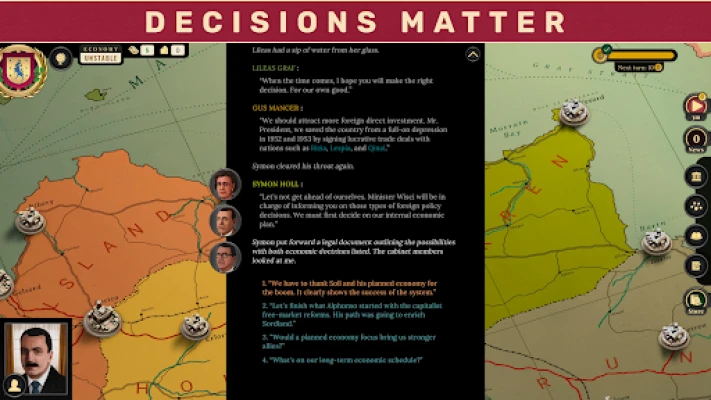 Suzerain के विस्तृत ब्रह्मांड में, हर चुनाव का गहरा परिणाम होता है। Sordland में, सुरक्षा, अर्थव्यवस्था, कल्याण और कूटनीति पर महत्वपूर्ण निर्णय लें जो आपके मूल्यों और पद की सीमाओं का परीक्षण करेंगे। 9 से अधिक अनूठे प्रमुख अंत और 25 से अधिक उप-अंत के साथ अपनी विरासत को आकार दें। राष्ट्रपति के रूप में, आपके निर्णय न केवल देश को बल्कि आपके परिवार और व्यक्तिगत रिश्तों को भी प्रभावित करेंगे। क्या आप देश को मंदी से उबारेंगे और संविधान में संशोधन के लिए राजनेताओं के साथ काम करेंगे? Rizia में, नए भू-राजनीतिक परिदृश्य का अन्वेषण करें, नए राष्ट्रीय नेताओं के साथ संवाद स्थापित करें, और ऊर्जा तथा अधिकार जैसे मूल्यवान संसाधनों का प्रबंधन करें। शाही परिवार और कुलीनों की जटिल गतिशीलता में गहराई से उतरें, जहाँ प्रेम, कर्तव्य और राजनीति आपस में गुंथे हुए हैं। दर्जनों शाही फरमानों पर हस्ताक्षर करके अपने राष्ट्र का निर्माण करें और बारी-बारी से रणनीतिक सैन्य चुनौतियों का सामना करें। 20 विविध पात्रों के साथ बातचीत करें, जिनमें से प्रत्येक की अपनी अनूठी पृष्ठभूमि और प्रेरणाएँ हैं।