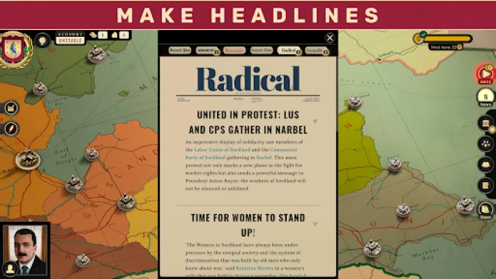 टॉरपोर गेम्स की सुजरेन एक कथा-चालित राजनीतिक श्रृंखला है जो आपको काल्पनिक सुजरेन यूनिवर्स में ले जाती है। राष्ट्रपति या राजा के रूप में नेतृत्व करें, जटिल निर्णय लें और अपने विकल्पों से इतिहास को आकार दें। अपने लोगों का मार्गदर्शन करें।